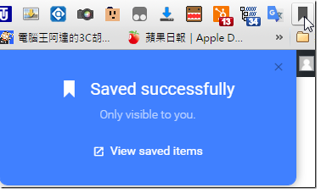 ↑安裝完之後,他會用圖像的方式,存放在Chrome的工具列中。
