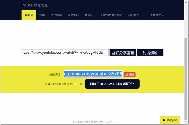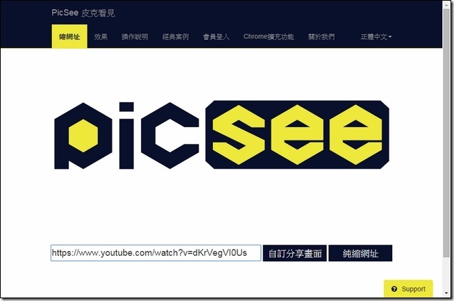 ↑但是經過PicSee轉換後,會變成PicSee的短網址。