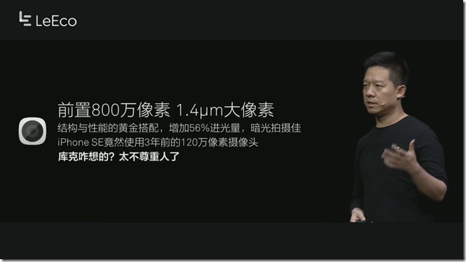 在今年的樂視北京發表會中,樂視執行長賈躍亭首先針對蘋果近日推出的iPhone SE,指出了其有七大缺點,並且認為他阻礙了手機產業的發展遇創新,並直指生態圈過於封閉,就在這一股指責蘋果氛圍下,賈躍亭推出了今年樂視旗下的三款手機。