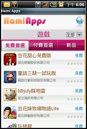 Hami Apps由應用程式、遊戲、APP推薦與購買資訊組成: