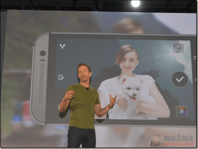 一開始由 HTC industrial designer 負責人 Jonah Becker 介紹「HTC EYE Experience」,此 技術是由 HTC 所開發的最新視訊應用技術,強調的是「HTC EYE」的使用體驗,重點在於前後攝影鏡頭的同時拍攝應用,可在各種狀態與情境下使用,以現場所同步播放的影片來看,的確相當有趣。想不到原來視訊鏡頭與主鏡頭的同時使用可以有這麼多樣的變化,而且最棒的是要使用這個新功能您不需要更換手機,HTC 會以 OTA 的方式由本月底開始進行更新,第一波進行線上更新的機型是 HTC One M8,其他機型如 HTC Butterfly 2 等其他機型也都會透過 OTA 方式逐步完成更新: