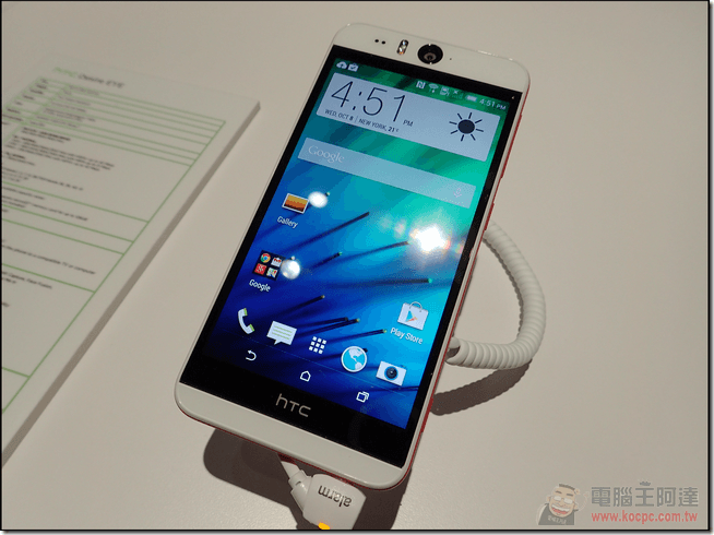 在造型方面採用 Desire 系列雙色一體成形的製造工藝,外觀上相當吸睛。硬體規格部分採用 5.2 吋 1920×1080 解析度螢幕,處理器使用 Qualcomm Snapdragon S801 2.3 Ghz 四核心處理器、2 GB RAM、16GB ROM 並是第一台完整原生搭載「HTC EYE Experience」技術的機種,硬體規格相當不錯,不過 HTC Desire EYE 定位為中階機種,目前還不確定台灣是否會上市,阿達在今天稍晚會另外寫一篇做詳細的介紹,敬請期待: