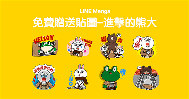 LINE Manga歡慶改版 進擊的熊大LINE貼圖免費送!下載漫畫再免費獲得五組貼圖 - 電腦王阿達