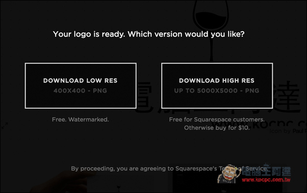 Squarespace 的操作方式很簡單,一進到網站首頁後,在中間輸入你想要的 Logo 名稱,如:公司、本名等等,然後按下確認鍵。