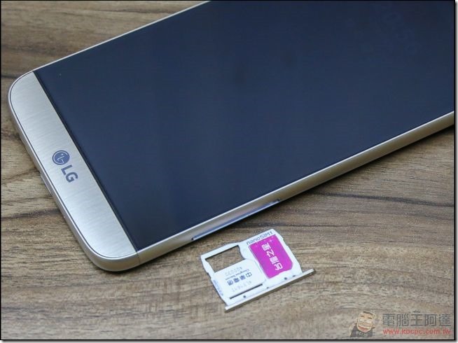 LG G5 採用最近相當流行的雙卡槽設計,可同時放置 SIM 卡與記憶卡,也可以直接放置兩張 SIM 卡進行雙卡雙待,使用上靈活度很高: