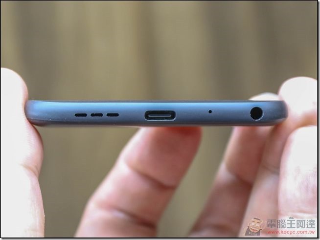 底部特寫,與手機原本的模組一樣,但多了一個可以輸出 Hi-Res 音效的 3.5 mm 耳機孔: