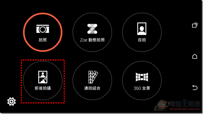 照相功能中也多了「前後拍攝」與「連拍組合」,HTC EYE Experience 最重要的精神就在「前後拍攝」之中:
