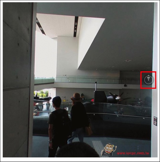 照片打開後,即可利用滑鼠拖曳畫面來觀賞 360 度,而右下角的陀螺儀視角也會跟著改變。