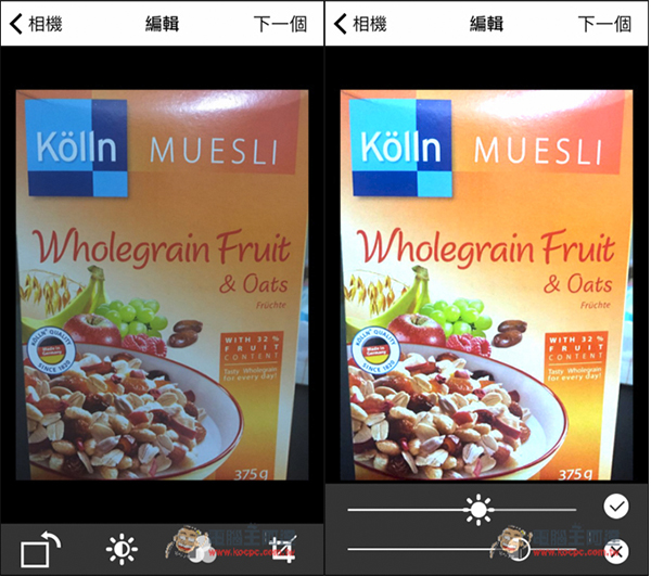 接下來會有簡易的編修工具,如果被攝物體太暗的話,可能會辨識錯誤,因此筆者建議可以將亮度與對比都拉高,讓文字更明顯。