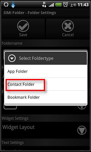 要設定在主畫面也很簡單,只要在「新增小工具」中選擇「SiMi Folder」您可以自行選擇Widget的範圍大小,接著選擇要拉到主畫面的資料夾: