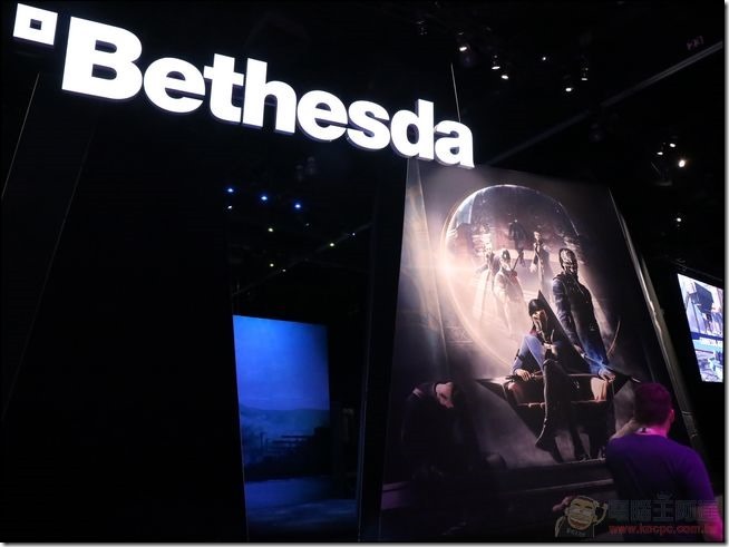 進到南館,我一開始的目標就是鎖定 VR 相關應用,其中遊戲大廠「Bethesda」在 E3 展前剛好宣布旗下的「Fallout 4」(異塵餘生4)將於 2017 年春天推出專為 HTC VIVE 重製的版本,這也是所有 VR 遊戲中(含OCULUS平台)第一款 AAA 級超級大作: