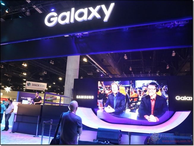 除了 HTC VIVE 以外,其實其他廠商也都有拿出自家的 VR 產品參展,比如三星就以「Galaxy」為名參展: